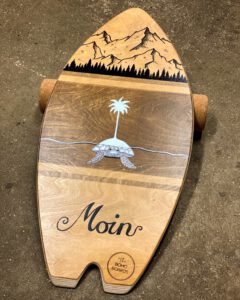 Das Highlight: persönlich gestaltete Balance Boards! Gemeinsam entwickeln wir dein Wunschdesign. Als Geschenk, Erinnerung an eine Reise, dein Firmenlogo, oder personalisierte Widmungen. Im engen Austausch entstehen einzigartige Motive, die ich anschließend mit viel Liebe zum Detail in Handarbeit auf dein Board übertrage.